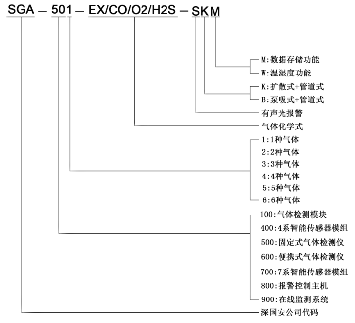 ※另有1000种气体和量程可选,详细请咨询深国安销售人员!