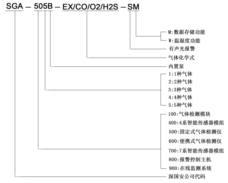 SGA-501B/503B/505B系列固定一体泵吸式白电油多合一气体检测仪除基本的气体检测、声光报警、继电器输出联动设备功能外,还有许多行业内首创的最新技术应用;如智能校准、智能提醒、一键消音、数据存储、三级报警、量程修改等功能;按照气体数量的多少,分为SGA-501B系列单一气体检测仪、SGA-503B系列三合一气体检测仪、SGA-505B系列五合一气体检测仪,具体区别请参照下面产品参数列表。