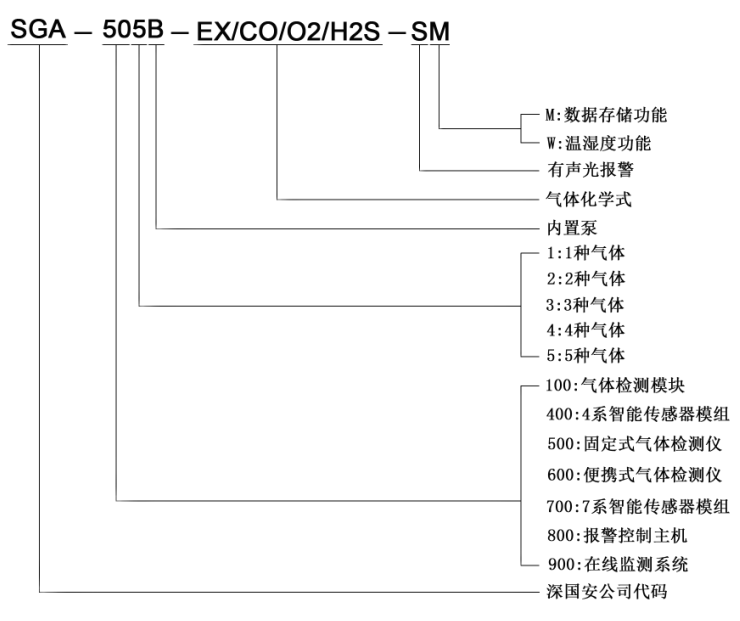SGA-501B/503B/505B系列固定一体泵吸式乙酸酐多合一气体检测仪除基本的气体检测、声光报警、继电器输出联动设备功能外,还有许多行业内首创的最新技术应用;如智能校准、智能提醒、一键消音、数据存储、三级报警、量程修改等功能;按照气体数量的多少,分为SGA-501B系列单一气体检测仪、SGA-503B系列三合一气体检测仪、SGA-505B系列五合一气体检测仪,具体区别请参照下面产品参数列表。
