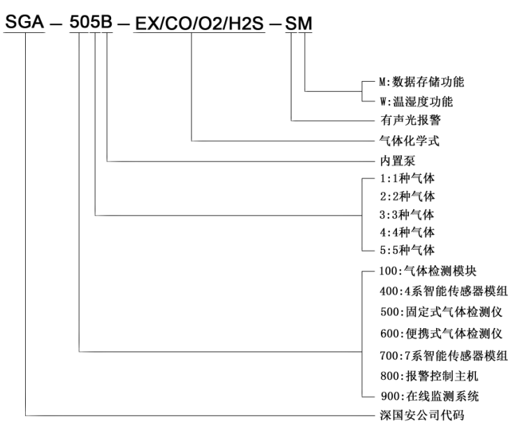 SGA-501B/503B/505B系列固定一体泵吸式氧代双甲烷多合一气体检测仪除基本的气体检测、声光报警、继电器输出联动设备功能外,还有许多行业内首创的最新技术应用;如智能校准、智能提醒、一键消音、数据存储、三级报警、量程修改等功能;按照气体数量的多少,分为SGA-501B系列单一气体检测仪、SGA-503B系列三合一气体检测仪、SGA-505B系列五合一气体检测仪,具体区别请参照下面产品参数列表。