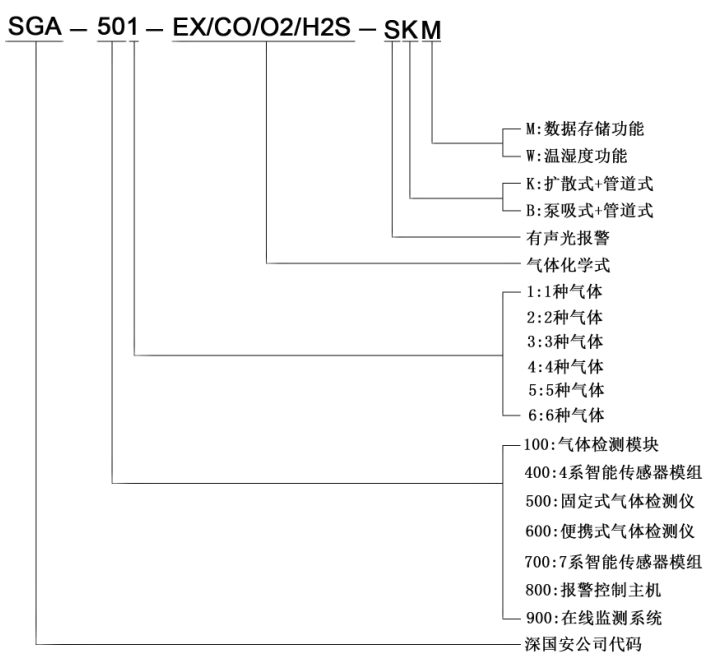 SGA-501系列白电油气体检测仪除基本的气体检测、声光报警、继电器输出联动设备功能外,还有许多行业内首创的最新技术应用;如智能校准、智能提醒、一键消音、数据存储、三级报警、量程修改等功能;按照检测气体数量的多少,为SGA-501系列单一气体检测仪、SGA-502系列二合一气体检测仪、SGA-504系列四合一气体检测仪和SGA-506系列六合一气体检测仪,具体区别请参照下面产品参数列表。