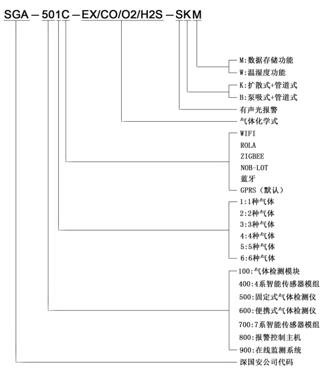 SGA-501C/502C/504C/506C系列无线风煤气体检测仪除基本的气体检测、继电器输出联动设备功能外,还有许多行业内首创的最新技术应用;如智能校准、智能提醒、一键消音、数据存储、三级报警、量程修改、报警方式多样、平台场景化、个性化设置、截取时间段数据、自主命名、添加多个联系人、流量提醒等功能,开放设备内部权限,使得客户拥有最大的自主权;按照气体数量的多少,为SGA-501C系列无线单一气体检测仪、SGA-502C系列无线二合一气体检测仪、SGA-504C系列无线四合一气体检测仪和SGA-506C系列无线六合一气体检测仪,具体区别请参照下面产品参数列表。